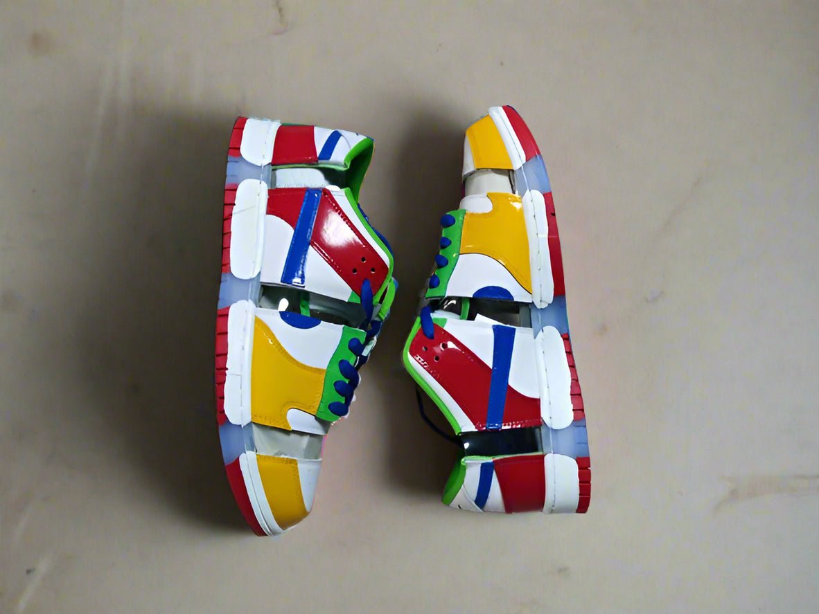 The Nike SB Dunk Low “Sandy Bodecker” pays homage to the visionary behind Nike Skateboarding. This unique release features a vibrant, multi-color design inspired by the original eBay Dunk, complete with translucent panels and bold color blocking. It's a must-have for collectors and skate enthusiasts alike.