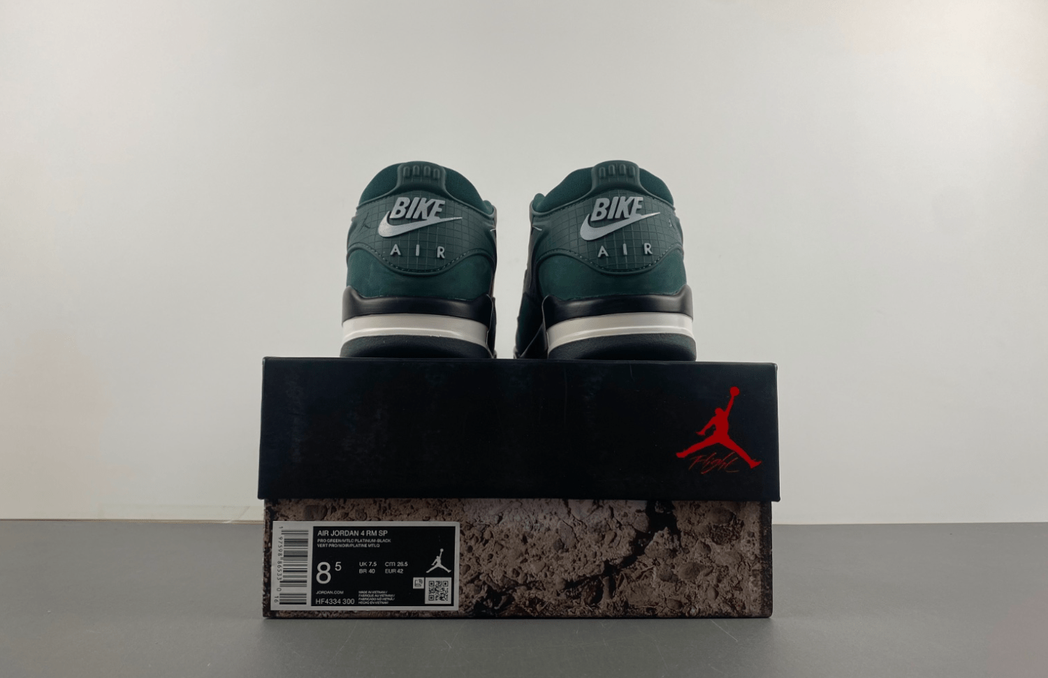 Nigel Sylvester x Jordan 4 RM "Fence Green" HF4334-300 – Suede BMX Drop Description Ride the fence, own the streets. — the Nigel Sylvester x Air Jordan 4 RM SP "Fence Green" (HF4334-300) is the pro BMX rider’s third RM collab, built with deep green suede, black nubuck overlays, mini white Swoosh, and translucent gum outsole. Pre-scuffed wear, reflective 3M hits, and Nigel’s signature branding nod to late-night fence hops and driveway grinds. Remastered low-profile fit + visible Air = all-day comfort for riders and collectors.