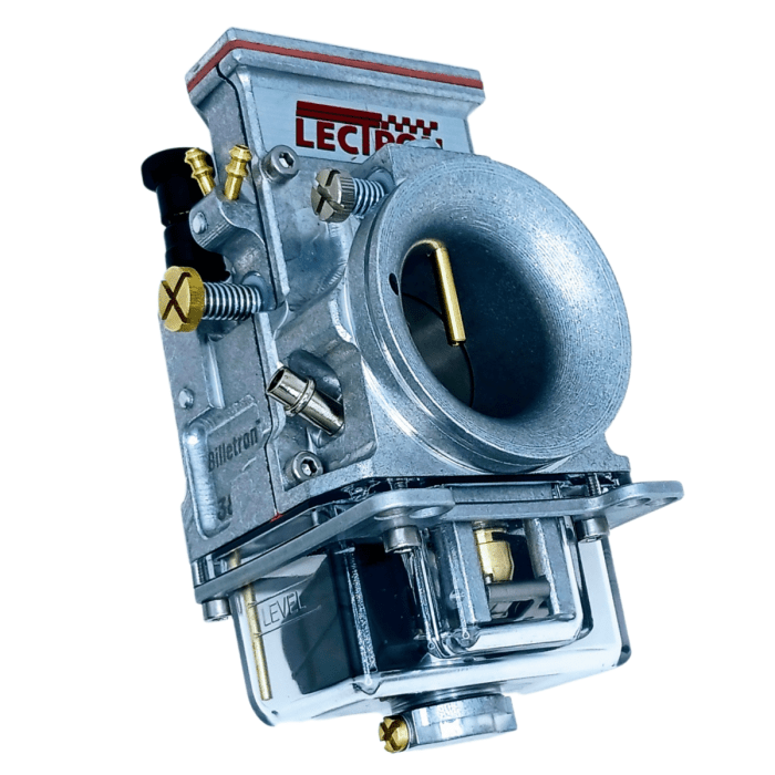 This kit includes one Lectron or Billetron carburetor, a custom throttle cable for thumb throttle integration, and a metering rod adjustment tool to fine-tune your setup.