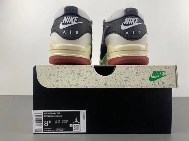 Jordan 4 RM SP Nigel Sylvester "Black Sail Red" HF4334-003 – BMX Driveway Pack Description Grind marks. Garage vibes. — the Jordan 4 RM SP Nigel Sylvester "Black Sail Red" (HF4334-003) drops the second colorway in Nigel’s BMX-inspired series, fusing Air Jordan 4 heritage with street-ravaged authenticity. Black suede overlays clash with sail leather and mesh, burgundy red outsoles, and pre-distressed scuffs — every scratch tells a story of driveway sessions and late-night rides. Reflective 3M, Nigel’s mini Swoosh logo, and visible Air lock in the legend.