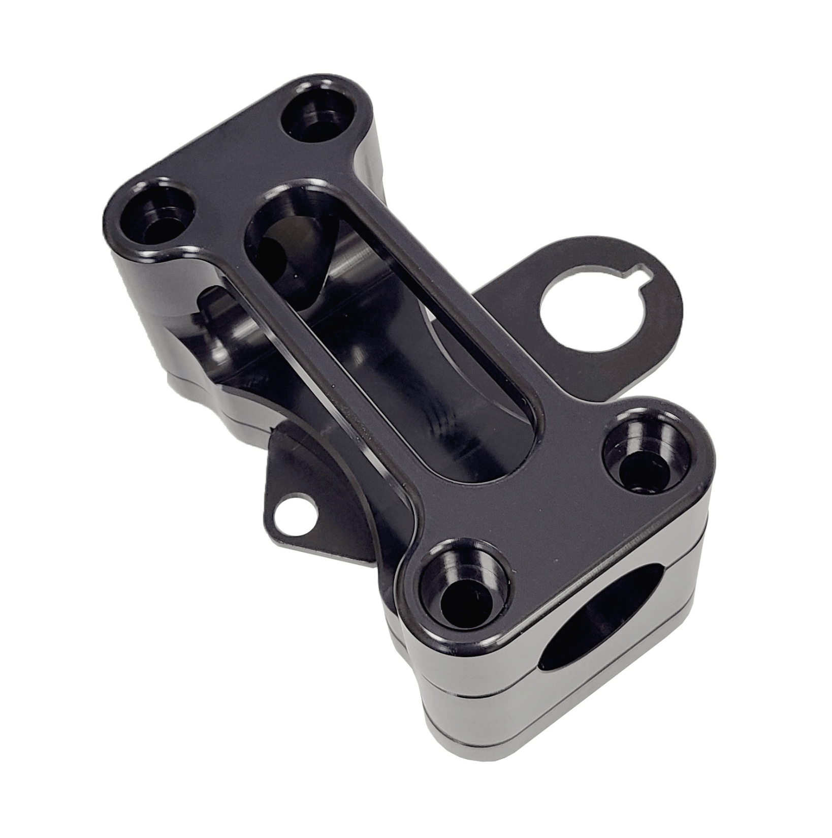 Billet Aluminum Phat Bar Clamp, Available in Black Anodized. Attaches to Stock Steering Stem for Mounting 1 1/8″ Handlebars.  Yamaha Clamps Raise the Bars Approx. 1″.  Ignition Mounting Plate is Removable.  All Hardware is included for Installation.