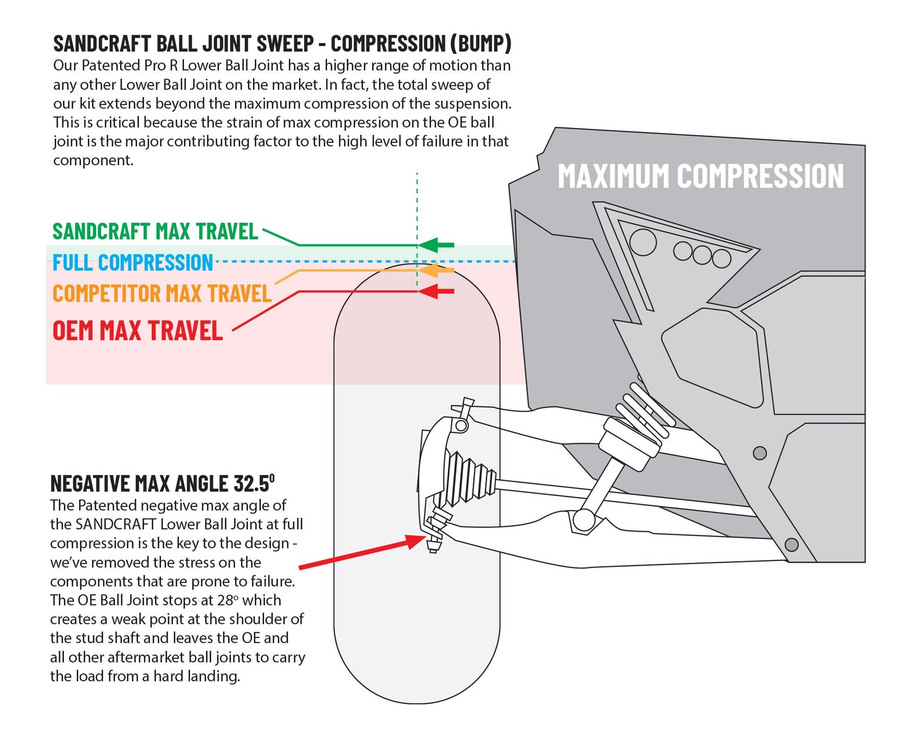 Sandcraft has solved the notorious Pro R and Turbo R lower ball joint issue with this patented design. Engineered to maximize performance and reliability to levels not seen anywhere else in the industry.